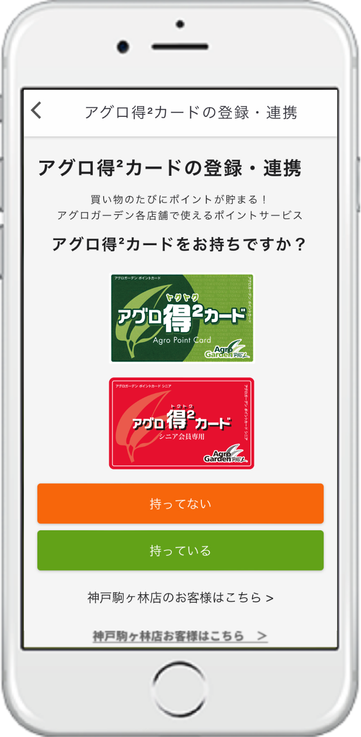 ※アグロ得²カードをお持ちの方は「持っている」をタップしてください。 -