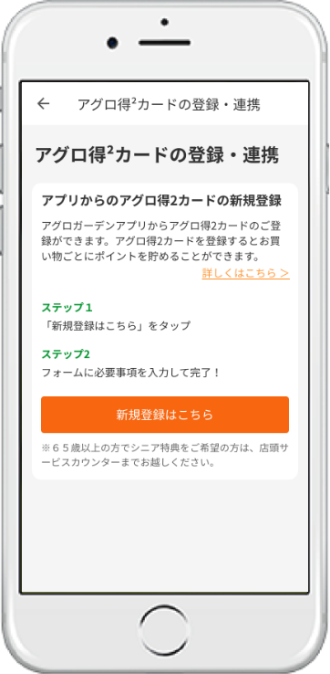 1「アグロ得²カード 登録・連携はこちら」をタップ