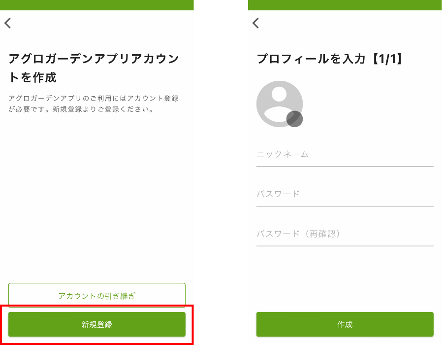 3.新規登録をタップ。ニックネームとパスワードをご入力ください。