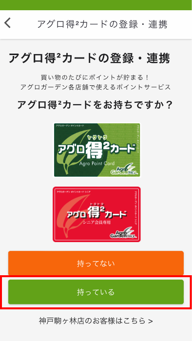 アグロ得²カードの登録・連携方法